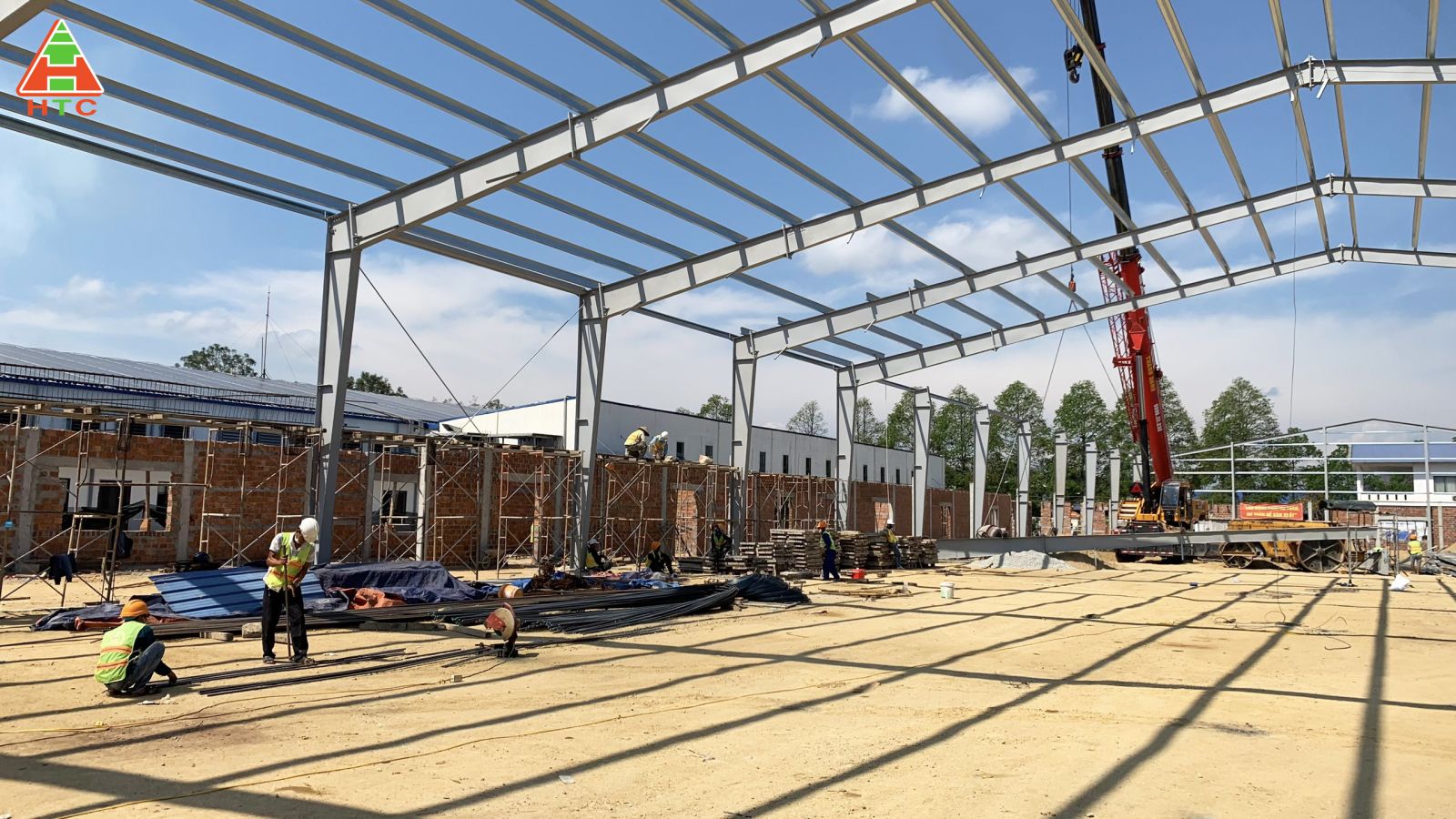 Không khí lao động hăng say tại công trường Nhà máy may 2 Song Thiên Long - CÔNG TY TNHH MTV ĐẦU TƯ VÀ PHÁT TRIỂN HẠ TẦNG KHU CÔNG NGHIỆP