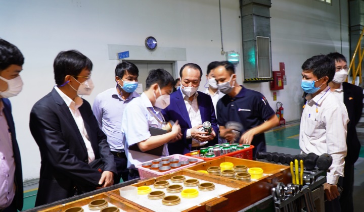 Phó Chủ tịch UBND tỉnh Phan Quý Phương kiểm tra tại Nhà máy sản xuất lon nhôm của Công ty TNHH Baosteel Can Making