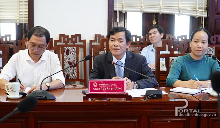 Chủ tịch UBND tỉnh Nguyễn Văn Phương trao đổi với Đoàn công tác tại buổi làm việc - Ảnh thuathienhue.gov.vn